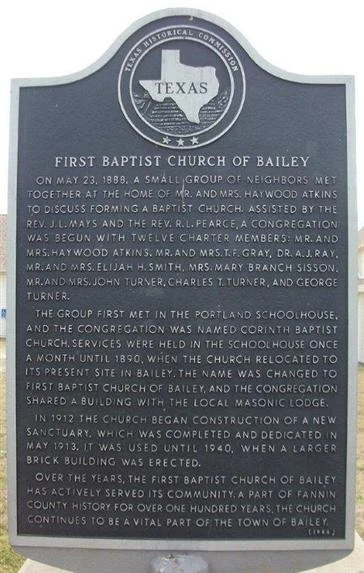 Over the years, the First Baptist Church of Bailey has actively services its community. A part of Fannin County history for over one hundred years, the church continues to be a vital part of the town of Bailey.