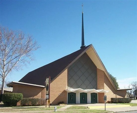 Organized November, 1852, under the Rev. J. R. Briscoe with six charter members. The first log church on this site doubled as the school. Cost of this lot - then outside city limits - was $50. Indian trail lay northeast.