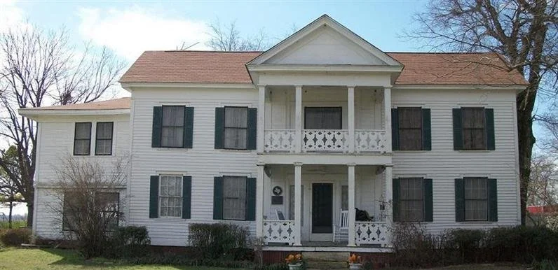 Built as a two-story house, it had a flat white rock fireplace in each end, both upstairs and downstairs, and a full veranda on both floors across the back. The original log cabin, built in the 1840's was used as a separate kitchen.