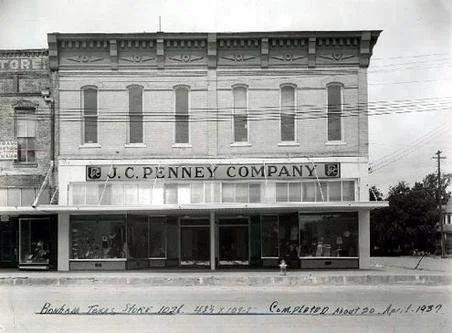 Imagine my surprise when the late February and early March editions of the Daily Favorite contained nothing in the way of ads or announcements. Assuming that perhaps the March 1 date was a little off, I kept turning the pages of microfilm, all the while getting a headache. Finally I came across an ad in the Thursday, April 18 paper urging Bonhamites to attend the grand opening of the new J.C. Penney store at the corner of Fifth and Main streets on April 19th and 20th, 1929.