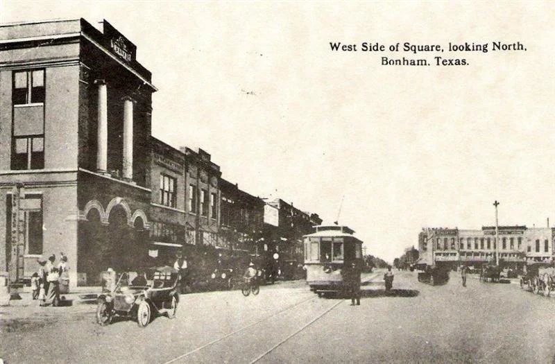 In Bonham - as in most Texas towns that became busy trading, ranching, or agricultural centers in the late 1800s - streetcars or trolleys were used in local transit. Bonham's steam-powered streetcar line, built about 1890, extended 2.5 miles from Russell Heights to the Texas & Pacific Railroad Station. Cars ran every 30 minutes. Fare was 5 cents; or 10 cents round-trip. The route avoided the business district, as streetcars frightened horses and disrupted trading.