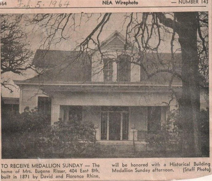 Built in 1871 by David Rhine, who came to Bonham from Philadelphia, Pa., in 1866, the home is as strong and sturdy today as it was when David and Florence Rhine first occupied it.